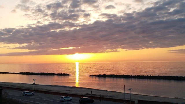 瀬波温泉最大の魅力といえば、やはり「日本海を望む絶景ロケーション」です。温泉街のすぐ向こうには雄大な海が広がり、朝日・夕日・星空と、時間帯によってまったく異なる表情を見せてくれます。